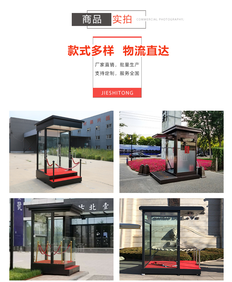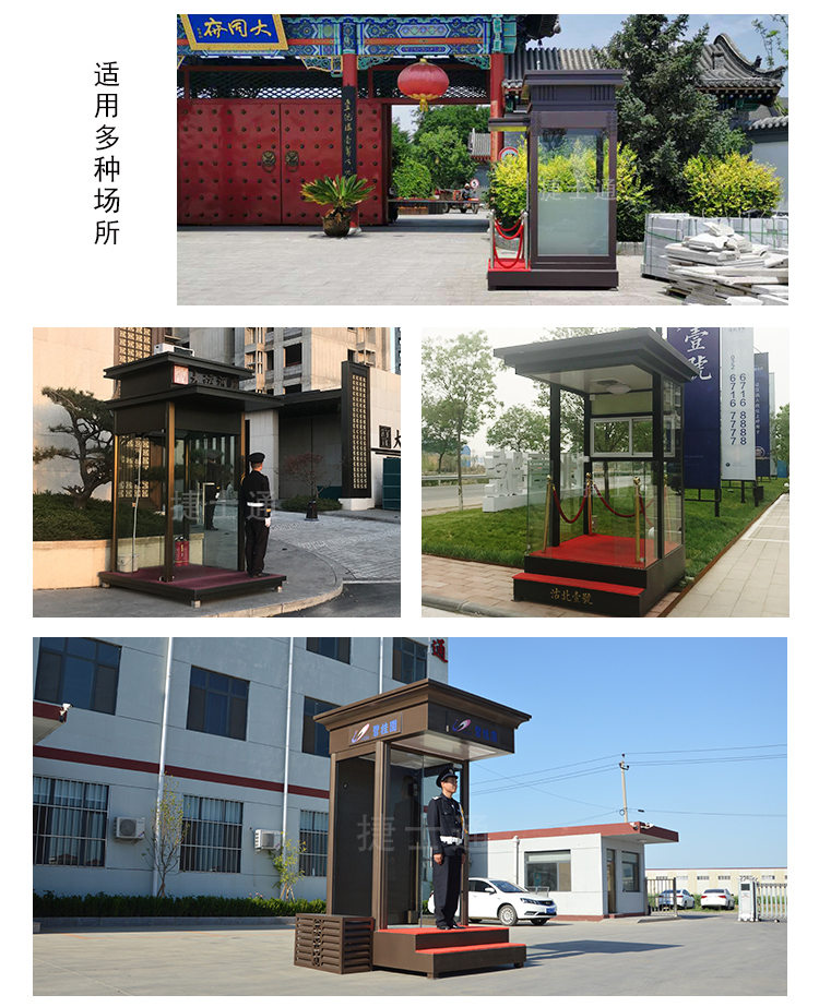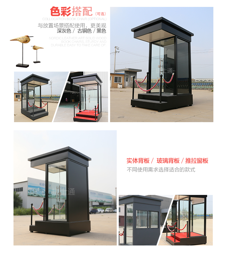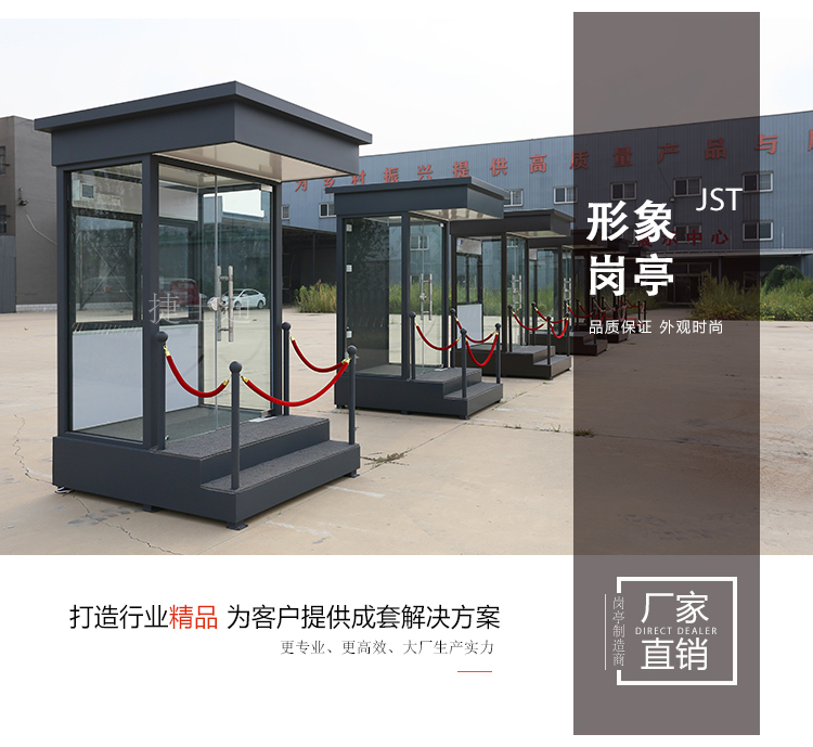 形象崗亭墻體為鍍鋅板噴漆處理,具有隔音、耐腐蝕性等特點,性價比高、后期便于護理,易清潔